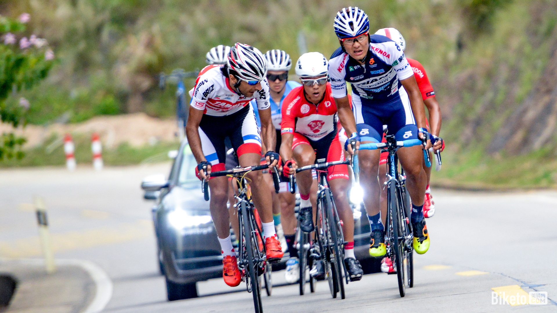 去年環(huán)福州云頂皇后賽段中,比賽出發(fā)不久就形成了穩(wěn)定的突圍集團(tuán),其中有三名中國選手,他們分別是薛富文(捷安特-卓比奧斯車隊(duì))、楊英翰(智美-恒翔車隊(duì))、趙京彪(智美-恒翔車隊(duì))。在來到云頂之前,突圍集團(tuán)與大集團(tuán)之間的差距一度拉到為1分55秒。在職業(yè)比賽中,突圍的兔子獲勝幾率往往不大,他們突圍而出的目的多種多樣:有的是爭(zhēng)取上鏡為贊助商服務(wù);有的是搶途中爬坡點(diǎn)和沖刺點(diǎn)為后面的勝利做鋪墊;而有的兔子則是心存僥幸,希望博得最后的勝利。