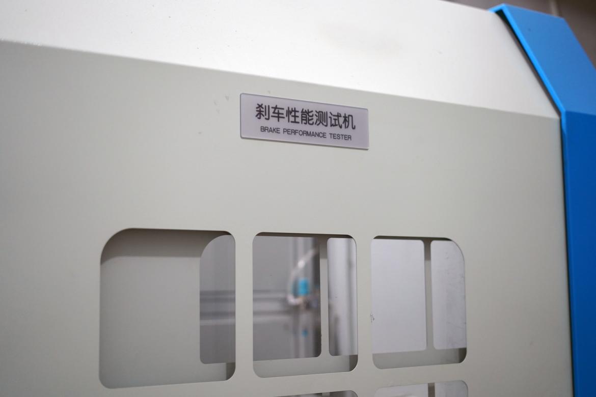 由一臺(tái)1500w額定功率的電機(jī)驅(qū)動(dòng)軸心轉(zhuǎn)動(dòng),剎車由可調(diào)氣泵驅(qū)動(dòng),力求接近實(shí)際使用下的情況。可通過電腦后臺(tái)讀取出剎車時(shí)間、制動(dòng)功率、溫度等各種數(shù)據(jù)。