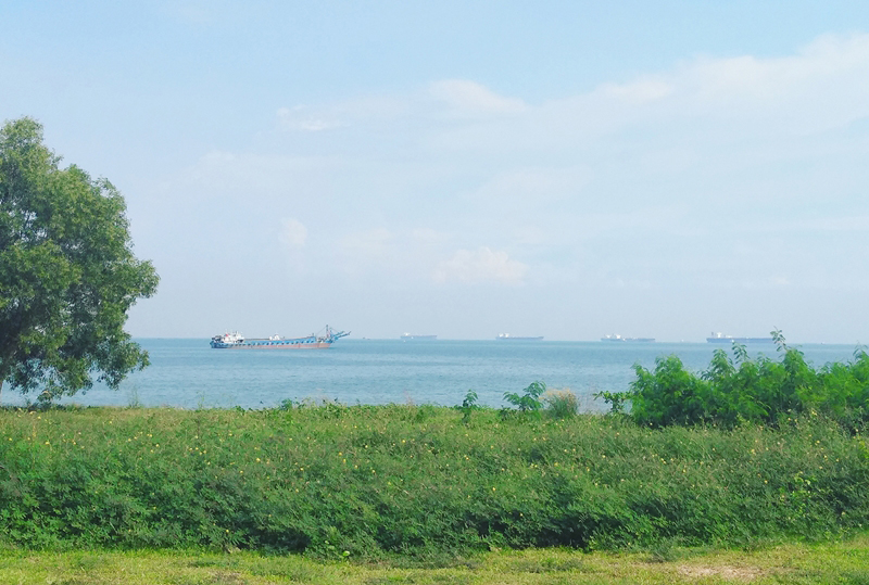 樟宜海灘是一個視野開闊的好地方。還在海灘外圍的馬路,就看到有起降的飛機(jī),飛得很低很低。這里海灘公園建設(shè)比較完善,環(huán)境宜人,步道寬敞。