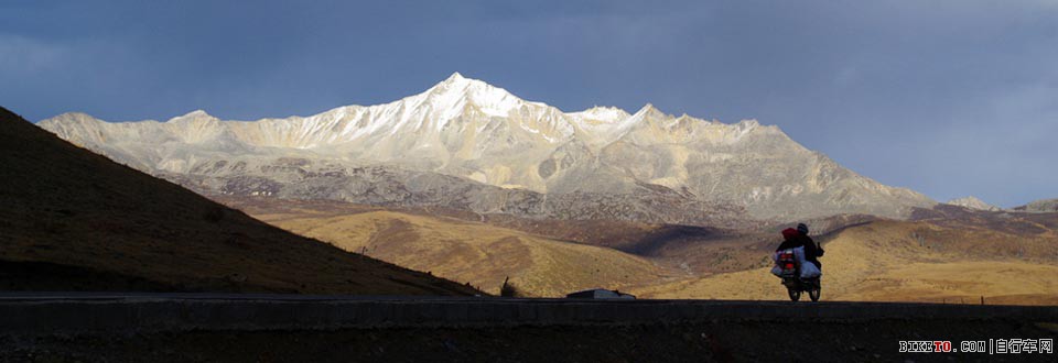 從日魯庫翻過雞丑山,下來就到了99K,貢嘎山西坡的岔路口,我在第11天騎到了貢嘎山最適合觀景的一個(gè)地方:子梅埡口,并在埡口上住了兩個(gè)晚上,守株待兔,坐等貢嘎山的美景奇境。